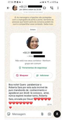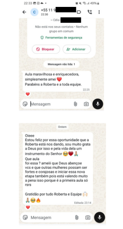 VEJA UM POUCO DOS DEPOIMENTOS DE NOSSAS ALUNAS, SOBRE A PRIMEIRA AULA, REALIZADA EM 03/03/26